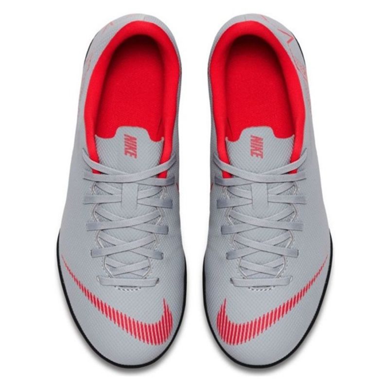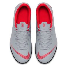 Juniorské turfy Nike Mercurial Vapor 12 Club TF GS Jr je najobľúbenejší model predovšetkým medzi amatérskymi a začínajúcimi hráčmi. Odolný zvršok z syntetického materiálu disponuje jemnou mikrotextúrou, čím je zaručený výnimočný kontakt s loptou. Profilovaná vložka zlepšuje jeho sadzbu chodidla. Syntetická zmes a dezén podrážky umožňuje výborne zrýchliť i rýchlo meniť smer a poskytuje výnimočný záber.