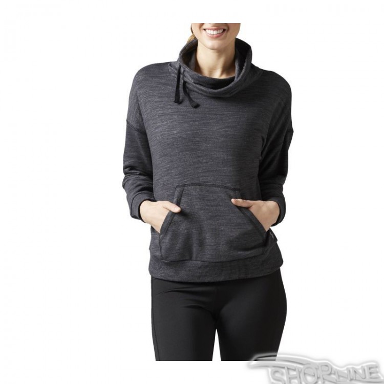 Dámska mikina Reebok s kapucňou. Vyrobená z materiálov príjemných na dotyk, mierne elastická, nie je lesklá. Predné dve vonkajšie vrecká. V spodnej časti rukávov a v oblasti pásu široké manžety. Na jednom z vreciek malé logo Reebok.