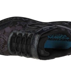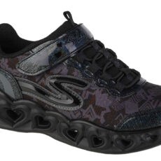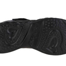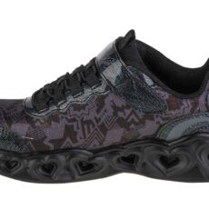 Model športovej obuvi pre dievčatá v čiernom prevedení , ktorý je univerzálny a určite osloví naše deti. Dominantným vzorom, ktorý zdobí topánky, sú geometrické vzory a srdiečka v podrážke. Ideálne do škôlky či školy, pretože si ich dieťa môže obliekať samé, pretože majú pohodlné zapínanie na suchý zips a šnúrky sú nahradené systémom elastických bungee línií.