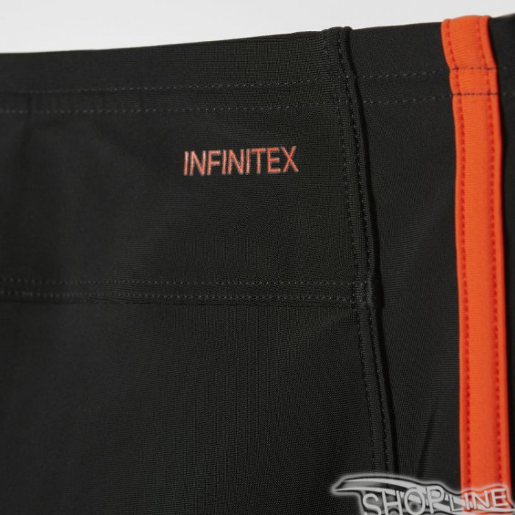 Juniorské plavky Adidas,ktoré okrem skvelého šortkového strihu a materiálu najvyššej kvality disponujú technológiou Infinitex,ktorá ochráni plavky pred účinkami chlóru,čím je predĺžená ich životnosť.Plavky sú v páse vybavené sťahovacou šnúrkou. Vnútorná podšívka zabraňuje presvitaniu.Jemný a odolný materiál je elastický vo všetkých štyroch smeroch a disponuje filtrom UPF 50+.